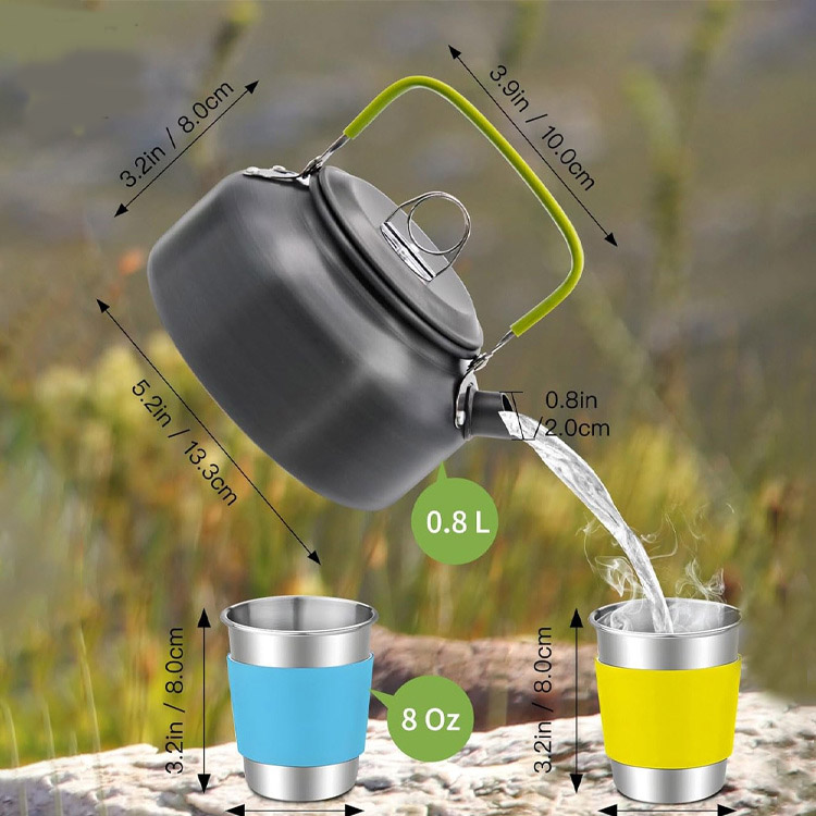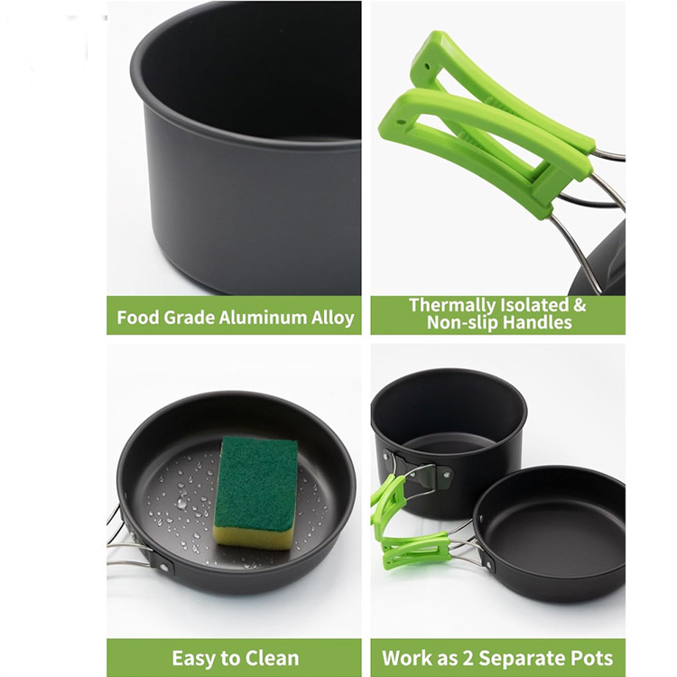 เครื่องครัวผลิตจากอลูมิเนียมอัลลอยด์ระดับพรีเมียมพร้อมเคลือบสารปลอดสารพิษ ช่วยให้กระจายความร้อนได้ทั่วถึง และทนทานต่อการปรุงอาหารแคมป์ไฟ ขณะที่ยังคงปลอดภัยสำหรับการเตรียมอาหาร