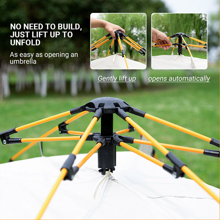 โดดเด่นด้วยเทคโนโลยีเปิดอัตโนมัติที่เป็นนวัตกรรมใหม่ที่ช่วยให้เต็นท์กางออกได้เต็มที่ภายในไม่กี่วินาที ช่วยลดขั้นตอนการประกอบที่ซับซ้อนและประหยัดเวลาอันมีค่าในการตั้งแคมป์
