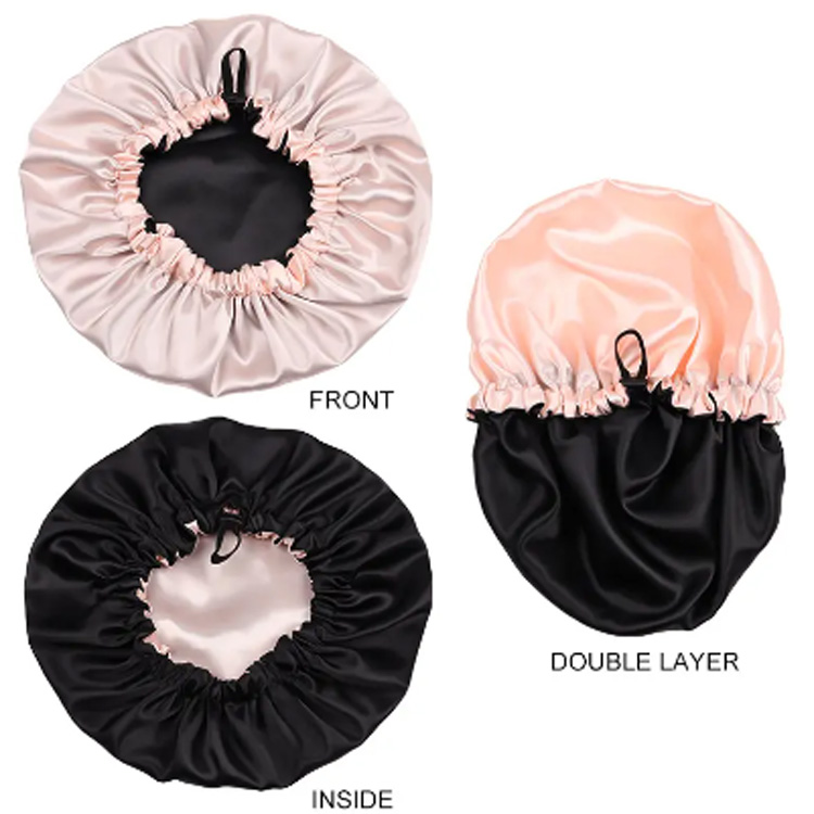 Bonnet Bonnet Bonnet Women Cap. Cap. Bonnet Satin Double-Layer Double-Layer ที่ปรับได้นี้ให้ความสะดวกสบายและการป้องกันที่ดีที่สุด เหมาะอย่างยิ่งสำหรับการนอนหลับอาบน้ำหรือการดูแลตอนกลางคืนการออกแบบที่ย้อนกลับได้และซับในสีดำทึบทำให้มั่นใจได้ว่ามีความปลอดภัยและมีสไตล์ เหมาะสำหรับการรักษาผมที่แข็งแรง!