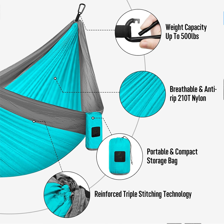 เปลญวนแคมป์ปิ้ง เปลญวนแบบพกพา Double & Single ระบบผ่อนคลายอเนกประสงค์ขั้นสูงสุดสำหรับการผจญภัยกลางแจ้ง เปลญวนแคมป์ปิ้งนี้รองรับทั้งผู้ใช้สองคนและคนเดียวด้วยการออกแบบที่ปรับเปลี่ยนได้ พร้อมด้วยสายรัดต้นไม้แบบมืออาชีพ เปลญวนร่มชูชีพไนลอนน้ำหนักเบานี้มอบความสบายและการพกพาสูงสุด