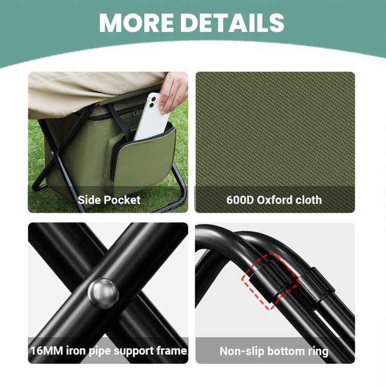 ออกแบบเก้าอี้สตูลพับได้เก้าอี้ตกปลาท่องเที่ยวที่นั่งแบบพกพาระดับพรีเมียร์สำหรับการใช้ชีวิตกลางแจ้งสมัยใหม่ เก้าอี้สตูลแคมป์ปิ้งที่ขายดีเหล่านี้มีการออกแบบพับได้ร่วมสมัยเพื่อความสะดวกสบายสูงสุด เหมาะสำหรับการเดินทาง ตกปลา และพักผ่อนบนชายหาด โดยผสมผสานสไตล์เข้ากับความสบายที่ใช้งานได้จริง