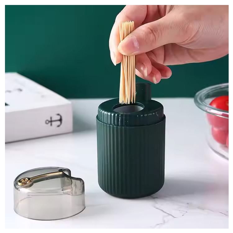 ออกแบบด้วยกลไกปุ่มกดอัจฉริยะ เครื่องจ่ายนี้จะปล่อยไม้จิ้มฟันเพียงอันเดียวทุกครั้งที่กด โดยไม่ต้องสัมผัส ไม่เลอะเทอะ โซลูชันที่ถูกสุขลักษณะและสะดวกยิ่งขึ้นเมื่อเปรียบเทียบกับคอนเทนเนอร์แบบเปิดแบบเดิมๆ