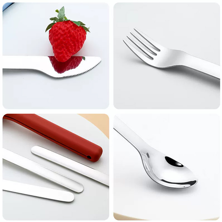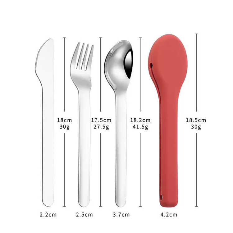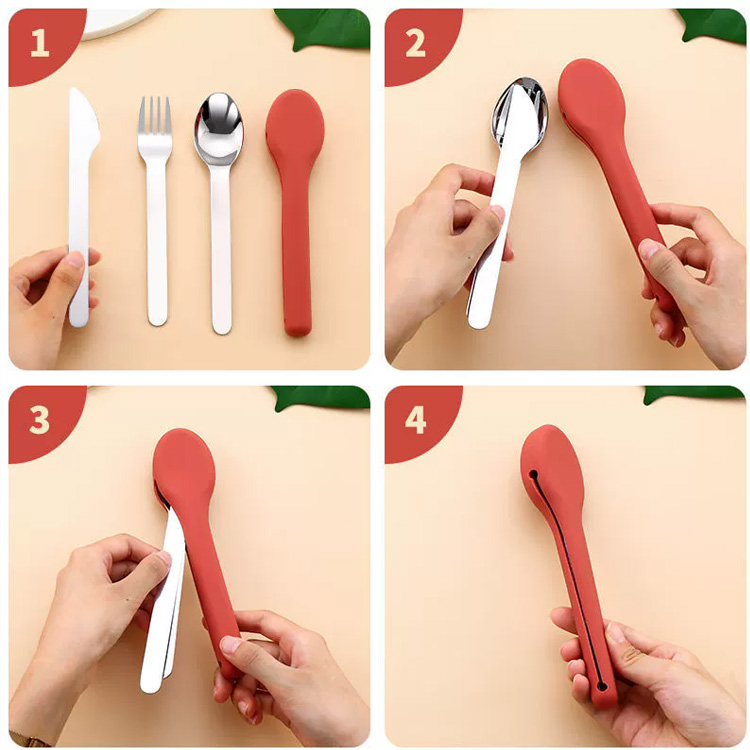 คุณภาพสูงชุดช้อนส้อมสำหรับตั้งแคมป์ท่องเที่ยวซิลิโคนแบบพกพาสหายรับประทานอาหารชั้นนำของคุณสำหรับการผจญภัยกลางแจ้ง ชุดช้อนส้อมคุณภาพสูงนี้มีภาชนะสเตนเลสสตีลที่ทนทานในกล่องซิลิโคนป้องกัน เหมาะสำหรับการตั้งแคมป์ ท่องเที่ยว และปิกนิก รับประกันการรับประทานอาหารที่หรูหราและถูกสุขลักษณะทุกที่