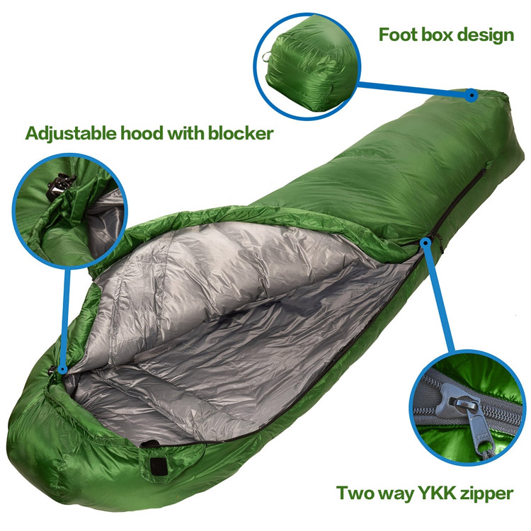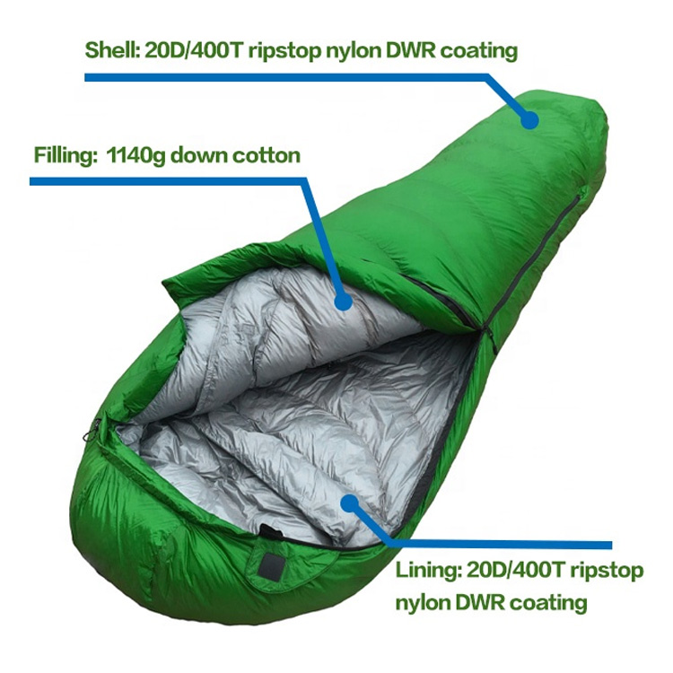 ถุงนอนมัมมี่สภาพอากาศหนาวเย็นแบบพกพาเบากลางแจ้ง โซลูชันการนอนหลับสภาพอากาศหนาวเย็นขั้นสูงสุดสำหรับการผจญภัยในถิ่นทุรกันดาร ถุงนอนมัมมี่น้ำหนักเบาพิเศษนี้มีฉนวนขนเป็ดเป็ดระดับพรีเมี่ยมเพื่อความอบอุ่นสูงสุด ออกแบบมาเพื่อการตั้งแคมป์อย่างจริงจัง โดยผสมผสานประสิทธิภาพการระบายความร้อนที่ยอดเยี่ยมเข้ากับน้ำหนักกระเป๋าที่น้อยที่สุด