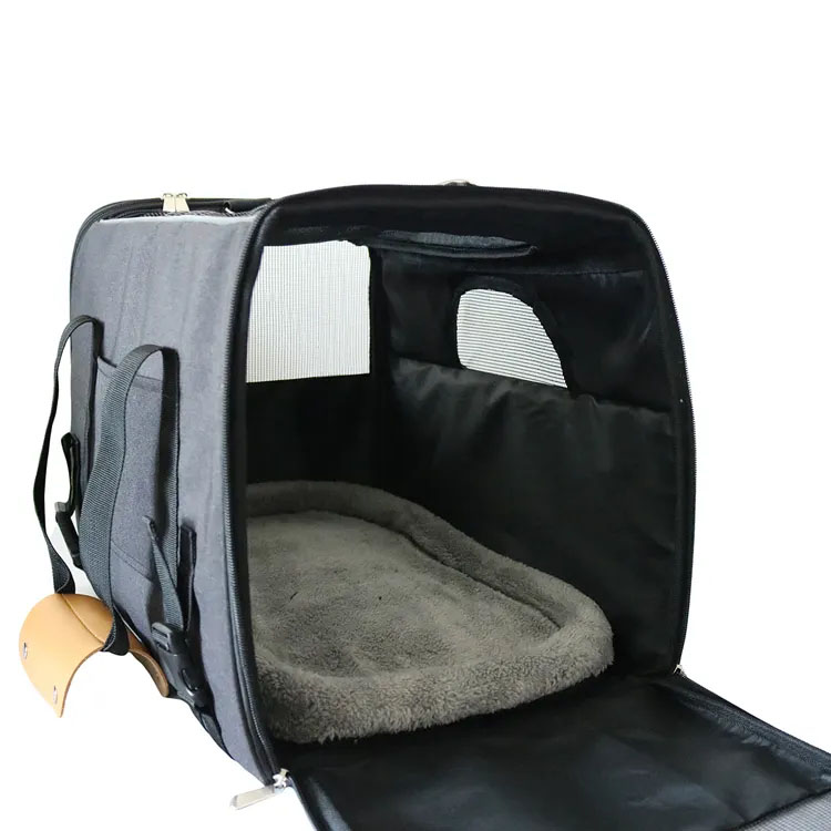 สัตว์สัตว์ขนาดเล็กผลิตภัณฑ์สัตว์เลี้ยงแมว carrie pet กระเป๋าถือกระเป๋าผ้าสัตว์เลี้ยงสีเทาสไตล์มีสไตล์มีการตกแต่งภายในสีขาวอ่อนเพื่อความสะดวกสบาย ติดตั้งด้ามจับและสายรัดที่ปรับได้ช่วยให้มั่นใจได้ว่าการขนส่งง่าย การออกแบบที่ระบายอากาศได้รับประกันความปลอดภัยในระหว่างการเดินทาง เหมาะสำหรับสัตว์เลี้ยงขนาดเล็ก