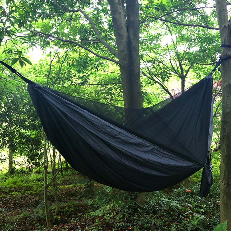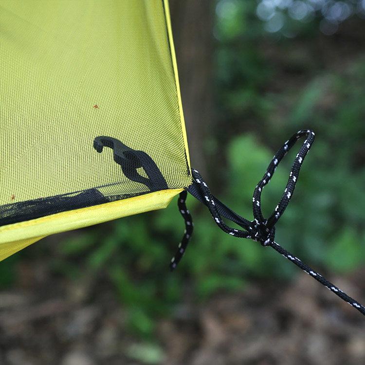 ตาข่ายละเอียดจะห่อหุ้มเปลญวนไว้อย่างสมบูรณ์ด้วยระบบซิปเข้า ทำให้เกิดสิ่งกีดขวางที่ไม่สามารถเข้าถึงยุงและแมลงกัดอื่นๆ ในขณะที่ยังคงการไหลเวียนของอากาศที่ดีเยี่ยม