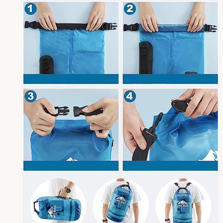 Roll Top แบบพกพาใช้งานง่ายพกพาถุงแห้งโปร่งใสโซลูชั่นกันน้ำที่เป็นนวัตกรรมใหม่สำหรับการผจญภัยกลางแจ้ง กระเป๋ากันแห้งดีไซน์ใหม่นี้มีการปิดด้านบนแบบม้วนโปร่งใสเพื่อให้ระบุตัวตนได้ง่าย ด้วยตัวเลือกหลายขนาดและการออกแบบการพกพาแบบพกพา จึงเหมาะสำหรับการเดินป่าและสภาพแวดล้อมที่เปียกชื้นต่างๆ