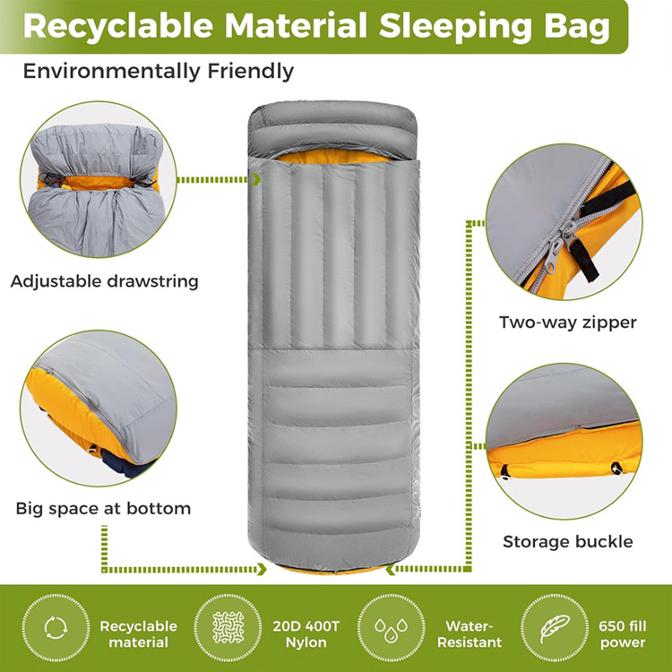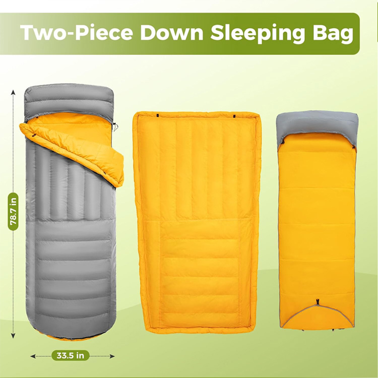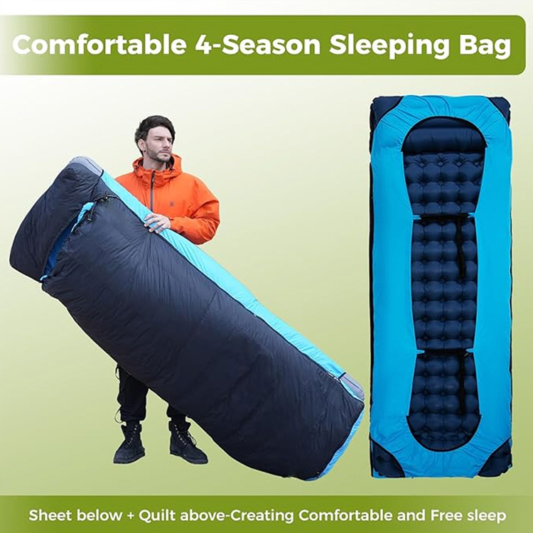 Ultralight Down Camping ผ้าห่มเป็ดเบาะรองนอนระบบการนอนหลับสี่ฤดูกาลขั้นสูงสุดของคุณสำหรับการผจญภัยในถิ่นทุรกันดาร ถุงนอนดาวน์แบบเบาพิเศษนี้ผสมผสานฉนวนกันขนเป็ดระดับพรีเมี่ยมเข้ากับแผ่นรองเป่าลมในตัว ทำหน้าที่เป็นทั้งผ้าห่มชั้นบนและถุงนอน โดยให้ความอบอุ่นสูงสุดโดยไม่กระทบต่อน้ำหนัก