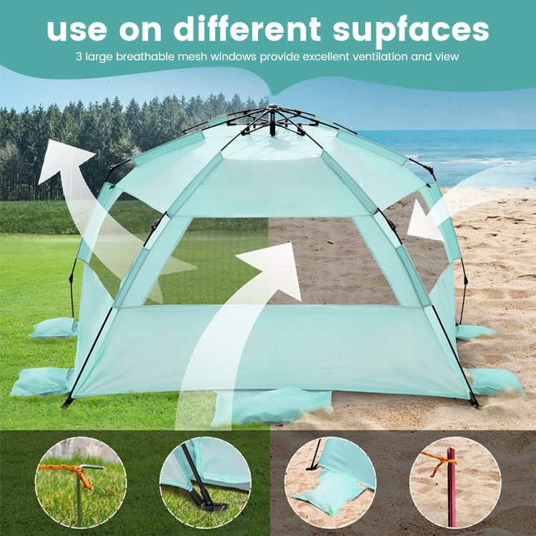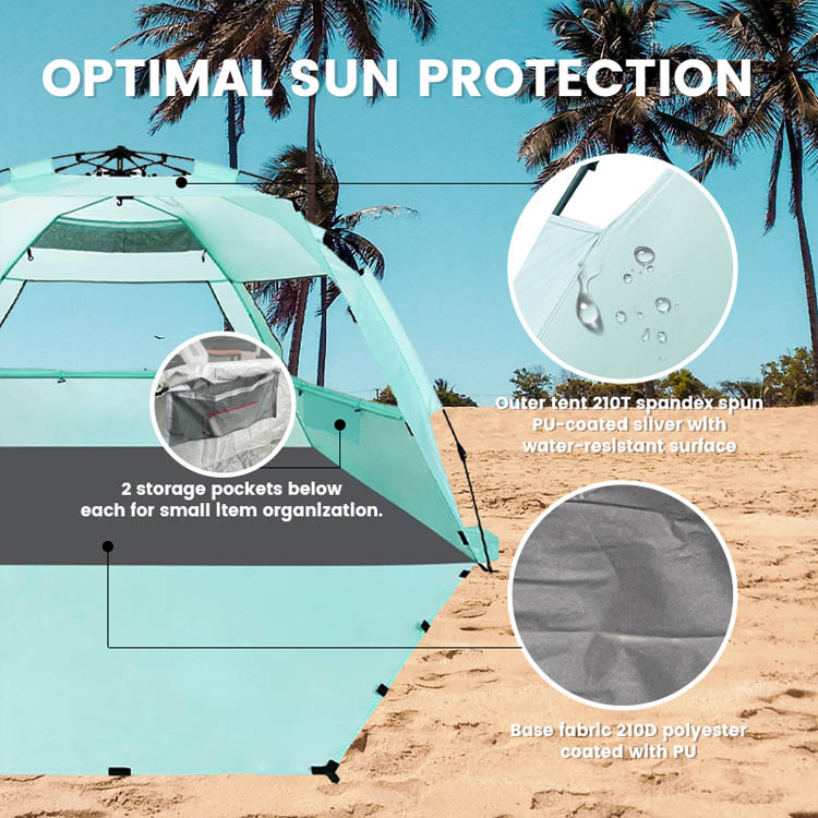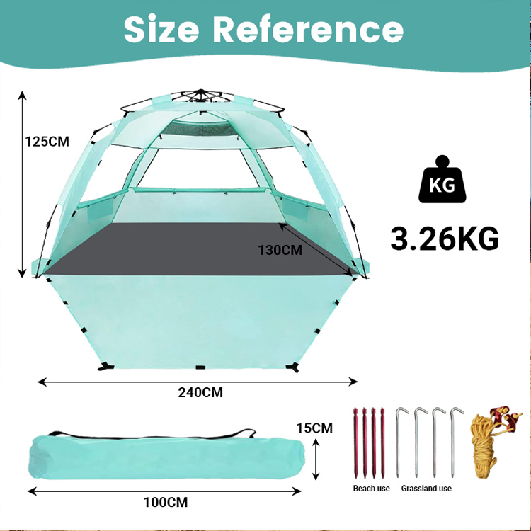 ขายส่งจำนวนมาก Ultralight โพลีเอสเตอร์ Sun Shade Beach Tent โซลูชันการขายส่งชั้นนำของคุณสำหรับการป้องกันแสงแดดที่ชายหาด เต็นท์บังแดดโพลีเอสเตอร์น้ำหนักเบาพิเศษนี้มีการออกแบบพับได้แบบป๊อปอัพที่สะดวกสบาย เหมาะสำหรับการใช้งานชายหาดกลางแจ้งจำนวนมาก โดยผสมผสานการใช้งานที่ง่ายดายเข้ากับการบังแดดที่เชื่อถือได้